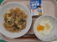 給食では、うずらの卵をうどんにのせて、かわいらしい月にしました。