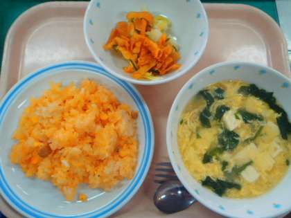 今日の献立 ・チキンライス ・卵とベーコンのスープ
