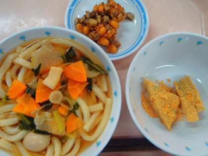 5月1日 今日の給食 公開日 2015/05/01 更新日 2015/05/01 給食 今日の献立 ・ちゃんこうどん ・大豆とごぼうのかみかみ揚げ ・抹茶くずもち ・牛乳 にんじん(徳島) 大根(千葉) 長ねぎ(群馬) こまつな (埼玉) ごぼう(青森) 鶏肉(岩手) いか(ペルー) 牛乳(明治乳業) いいね(0)