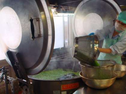 給食室で丁寧に洗って、塩ゆでして炊きたてのごはんに混ぜました。給食の