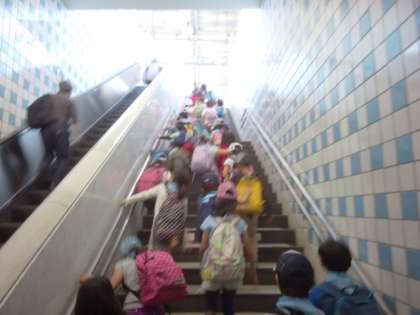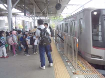 予定通りの電車に乗って、学校に戻ります。 好天に恵まれて、よい遠足になりました。