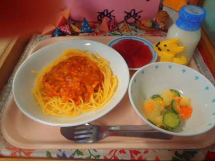 4月21日の給食 公開日 2016/04/21 更新日 2016/04/21 給食 ・ツナとトマトのスパゲティ— ・ポテトのチーズサラダ ・グレープゼリー ・牛乳 【今日の食材と産地】 人参(徳島) 玉ねぎ(北海道) にんにく(青森) じゃが芋(鹿児島) きゅうり(埼玉) パセリ(静岡) レモン(広島) 鶏ガラ(北海道) 牛乳(明治乳業) いいね(0)