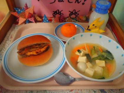 金平フィッシュバーガー 豆腐と野菜のスープ