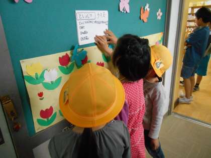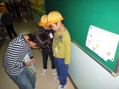 途中のクイズに答えると2年生がシールをはってくれました。