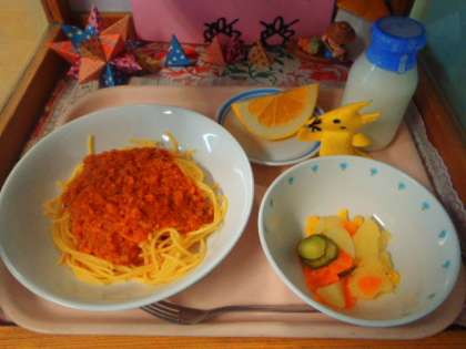 スパゲティ—ミートソース ポテトのイタリアンサラダ