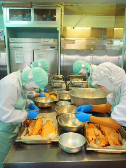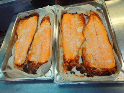 今日は、鮭の半身を納品してもらい酒と塩を振って焼き、身をていねいにほぐしてご飯に混ぜました!