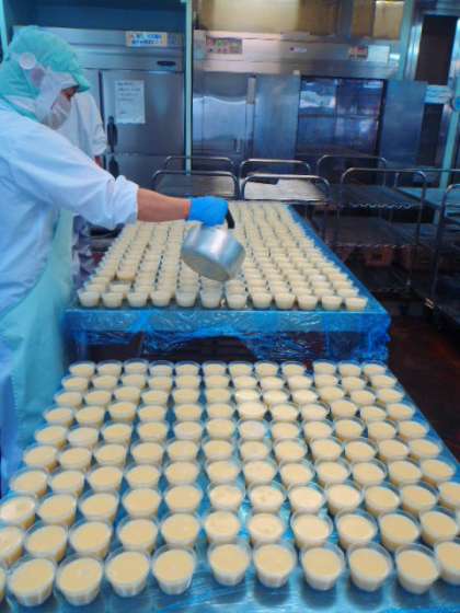 豆乳プリンの上に、ほんのりピンクのいちごソースをかけて♪