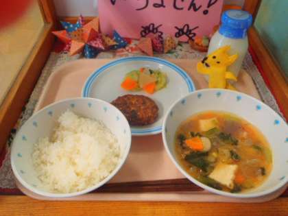 野菜の土佐醤油和え 具だくさん味噌汁 牛乳