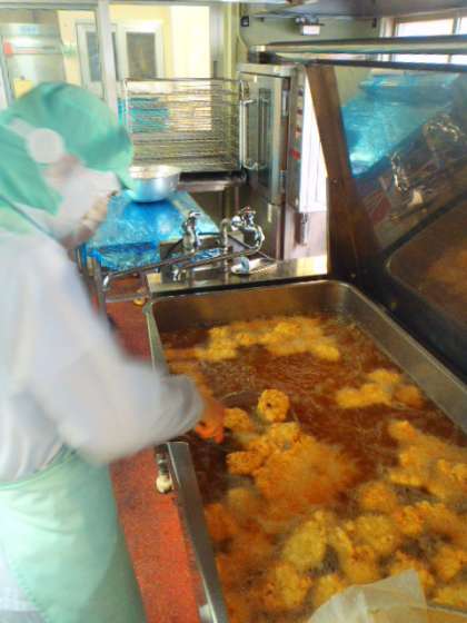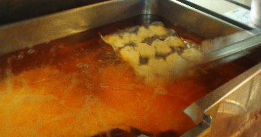 生地が柔らかいので、オーブンシートに落としていき、シートごとさっと油に投入します。この投入するのには、勢いと技がいります。(素早すぎてうまく撮れませんでした)