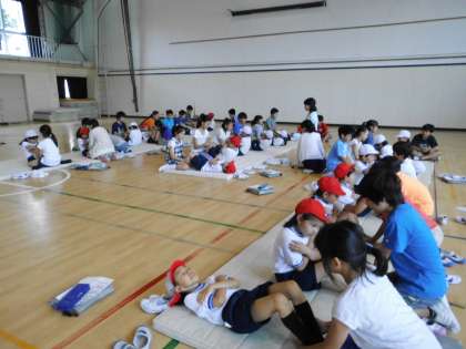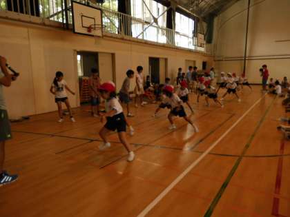 6年生が、1年生の体力テストの測定をお手伝いしてくれました。