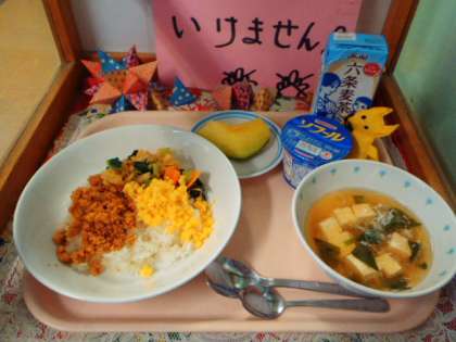 引き渡し訓練もあり、スープだけの水分では補給しきれないという昨年度の反省により、デサートにメロンと飲み物で麦茶をつけました。