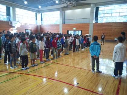 9月1日 5年八ヶ岳自然宿泊体験教室1 公開日 2016/09/01 更新日 2016/09/05 今日のできごと 爽やかな高原の朝を迎えました。 子どもたちは元気です。 起床時刻前に騒いで、叱られてしまった人もいます。 立派な体育館で、朝の会をしました。 いいね(0)