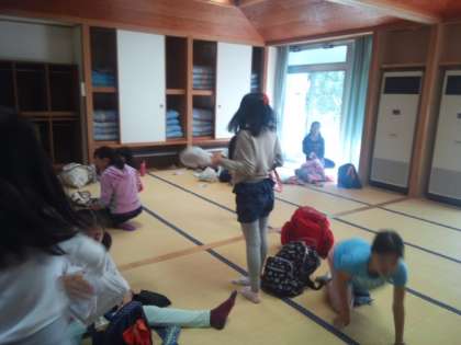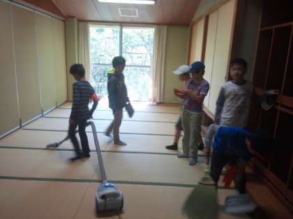 布団たたみや荷物整理、部屋の整頓と掃除、時間との戦いです。