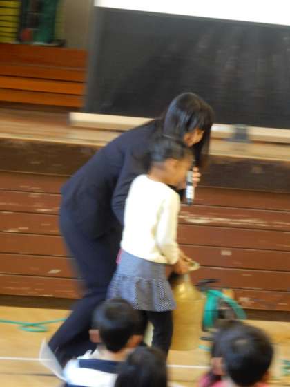 痩せ細った腕の子どもの写真や、丸1日かけて生活に必要な水を汲みに行く女の子の動画などを見ました。また、代表の子どもが実際に水の入った水がめを運んでみました。