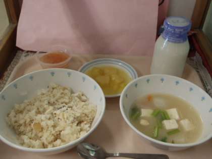 鯛めし・七草汁・フルーツきんとん・紅白お祝いゼリー・ぎゅうにゅう