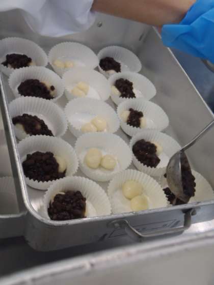 今日は、昔からの日本の伝統行事を伝えるという意味で、お餅は用意できなかったのですが、白玉を茹でてお餅に見立て、あずきをかけて食べました。