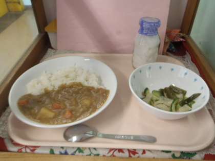 ポークカレーライス・こんにゃくと海藻のサラダ・ぎゅうにゅう
