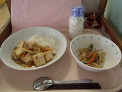7月13日の給食 公開日 2018/07/30 更新日 2018/07/30 給食 【今日の献立】 ごはん・家常豆腐・ナムル 【主な食材と産地】 生揚げ(新潟・佐賀)豚肉(青森、鹿児島)生姜(高知)玉ねぎ(愛知)にんじん(北海道)キャベツ(群馬)ピーマン(茨城)もやし(栃木)きゅうり(群馬) いいね(0)