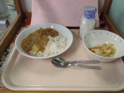 夏休み明け最初の給食は、人気メニューのカレーライスでした。