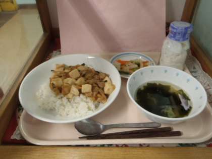 キムチ豆腐丼・わかめスープ・三色なます