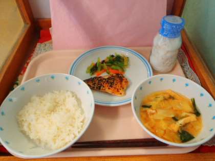 ごはん・みそ汁・サバの南部焼き・野菜と寒天の梅和え