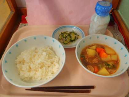 ごはん・肉じゃが・きゅうりとじゃこのあえもの・牛乳