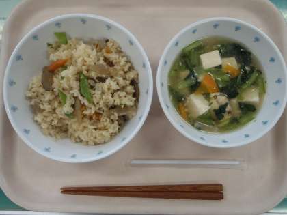 ・鶏ごぼうご飯 ・鯛のうすくず汁 ・牛乳