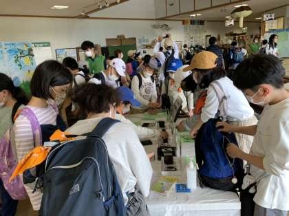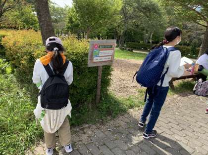 「ハイキングで足がくたくた!」と言いながらも、グループで協力して回答を見つけていました。