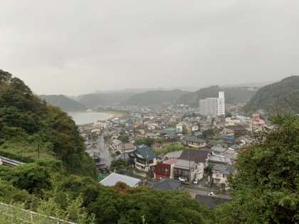 宿舎からは、興津の海が見えます。現在の天気は雨です。