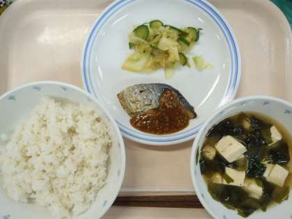 ・ごはん ・魚の梅ごま焼き ・野菜のしょうが醤油 ・みそ汁 ・牛乳