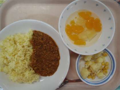 ・ドライカレー ・コーンポテト ・フルーツポンチ ・牛乳