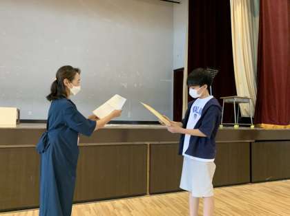 【表彰】6年生、平和祈念標語で優秀賞 公開日 2022/09/30 更新日 2022/09/30 今日のできごと 6年生は、夏休み前に平和祈念標語に取り組みました。 東根小学校から1名、優秀賞に選ばれ、夏休みに目黒区で表彰式が行われました。 全校の子どもたちが集まる機会がないので、学年で集まり、表彰式をしました。 おめでとうございます! いいね(0)