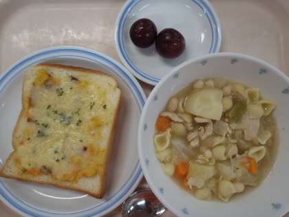 10月4日の給食 公開日 2022/10/04 更新日 2022/10/04 給食 ・クロックムッシュ風トースト ・鶏肉のポトフ ・くだもの(ぶどう) ・牛乳 にんにく(青森) 玉ねぎ・にんじん(北海道) パセリ(千葉) 鶏肉(青森) キャベツ(群馬) じゃがいも(北海道) 巨峰(長野) 今日はフランスの家庭料理ポトフです。鶏肉や、玉ねぎ、にんじん、キャベツをじっくり煮込んだ煮込み料理です。鶏がらスープで煮込むことで、薄味でもおいしく食べられます。 いいね(0)