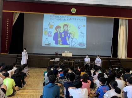 薬物の他、たばこ、飲酒をすることによるリスクについての話もありました。