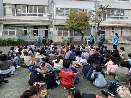 校庭に集合し、今日一日の振り返りの言葉をクラスの代表が1人ずつ、発表しました。