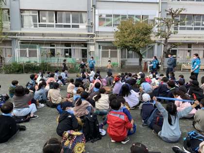 井の頭自然文化園を出て、パスで約1時間、東根小学校に戻ってきました。