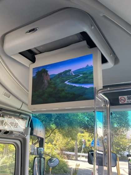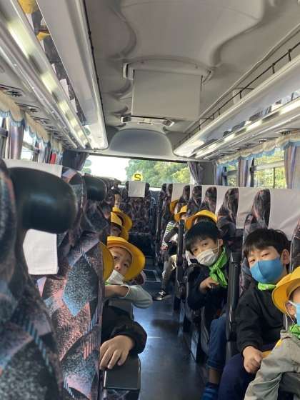 バスに乗りました。これから帰路につきます。バスの中では、DVD鑑賞です。