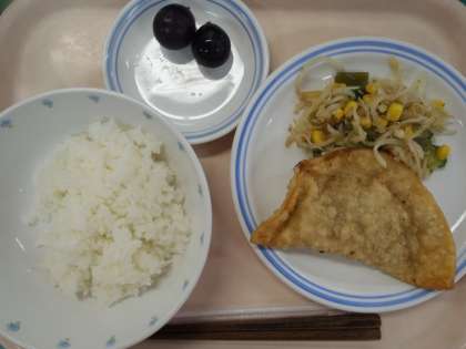 ・ごはん ・ジャンボぎょうざ ・かみかみサラダ ・果物(ぶどう) ・牛乳