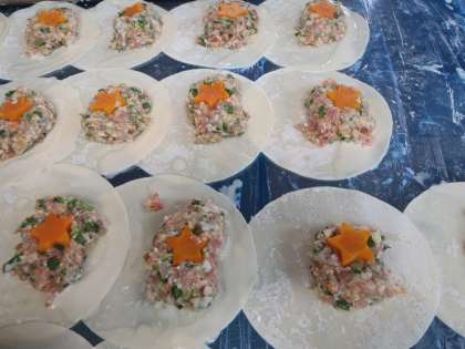 給食室は、肉だね作りや皮に包む作業など大変ですが、子どもたちが楽しみにしていることを励みに作りました。