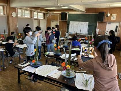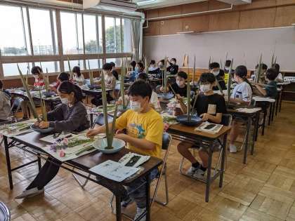 6年 華道体験教室 公開日 2022/10/21 更新日 2022/10/21 今日のできごと 今週、10月の18日(火)、20日(木)に各クラスで華道教室を行いました。 外部講師として華道の先生をお呼びして、華道の歴史や考え方を教えていただき、実際に花を活ける活動をしました。 花の長さを変えたり、全体のバランスを整えたりして、試行錯誤しながら楽しく取り組んでいました。 いいね(0)
