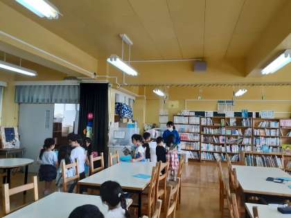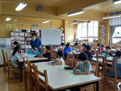 一年生は、週に1回、図書の時間があり、一冊ずつ貸し借りをしています。何度か貸し出しをしているので、貸し出しカードの書き方も、定着してきました。
