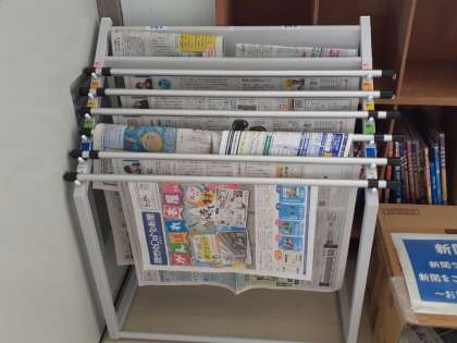 入り口には、今年から、朝日小学校新聞、読売子ども新聞がおいてあり、いつでも読めるようになっています。