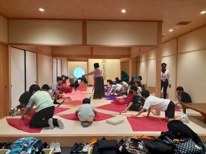 子どもたちの知っている国を聞いたり、日本の文化について考え、風呂敷の使い方を体験しました。