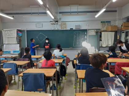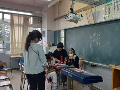 写真は運動クラブとシングクラブの様子です。運動クラブは雨で校庭が使えないため、教室で爆弾ゲームを楽しみました。