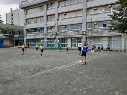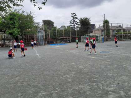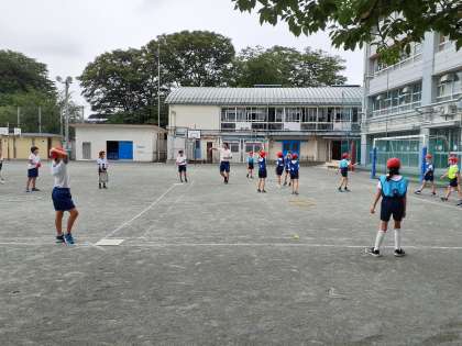 4年生は、校庭の体育でベースボール型ゲームの授業が始まりました。