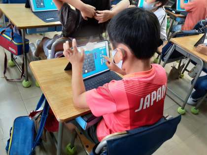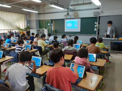 2年生の子どもたちは、真剣にプログラミングにとりくんでいました。