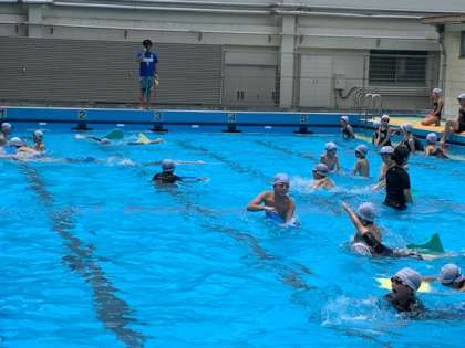 この日は、気温、水温共に最高のプール日和。5年生の水泳指導がありました。