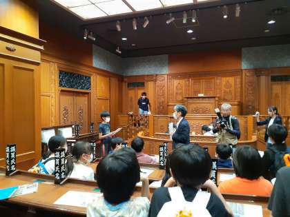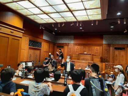 憲政記念館で議場体験をしました。議長、総理大臣役を決め、クラスごとに議会での決議のやり方などを体験しました。