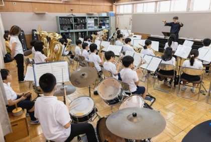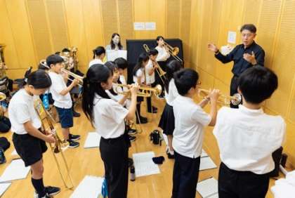 ほたる祭りの出演に向けて、金管バンドのメンバーはたくさん練習しました。今日も多目的室で音だしをしてから、パーシモンホールへ向かいました。