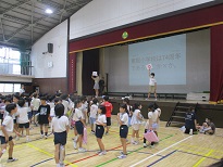集会委員会の6年生が一生懸命に準備をした問題を、みんなが楽しそうに答える姿が見られました。